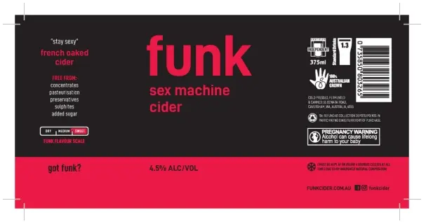 Funk Cider was criticised for the packaging and outdoor and website marketing of Sex Machine Cider in another ABAC complaint.