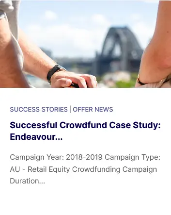 Equitise, which charges up to $10,000 and 6 per cent of funds raised under a crowdfunding campaign, currently features Endeavour on its site as a ‘Crowdfunding Success’ case study.