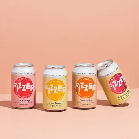 Following the success of its 4.0% abv FIZZER seltzers, Moon Dog has announced four new flavours: Peach Iced Tea, Pink Flamingo, Easy Peasy Lemon Squeeze and Raspberry Sorbet.