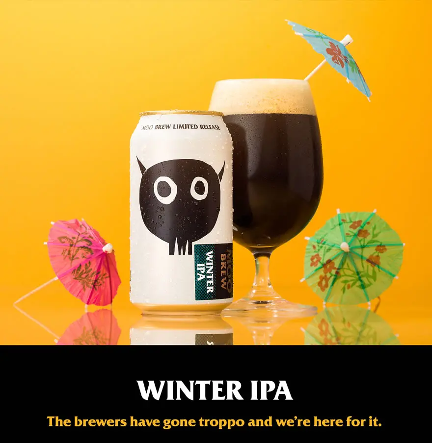 Moo Brew‘s Winter IPA (6.5% abv) looks like a stout but is brewed to taste like summer.