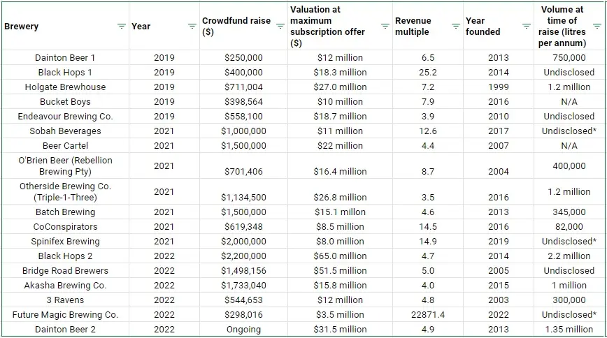 Meanwhile, many have turned to equity crowdfunding in the past few years, which have seen valuations come to the fore in the Australian brewing industry.