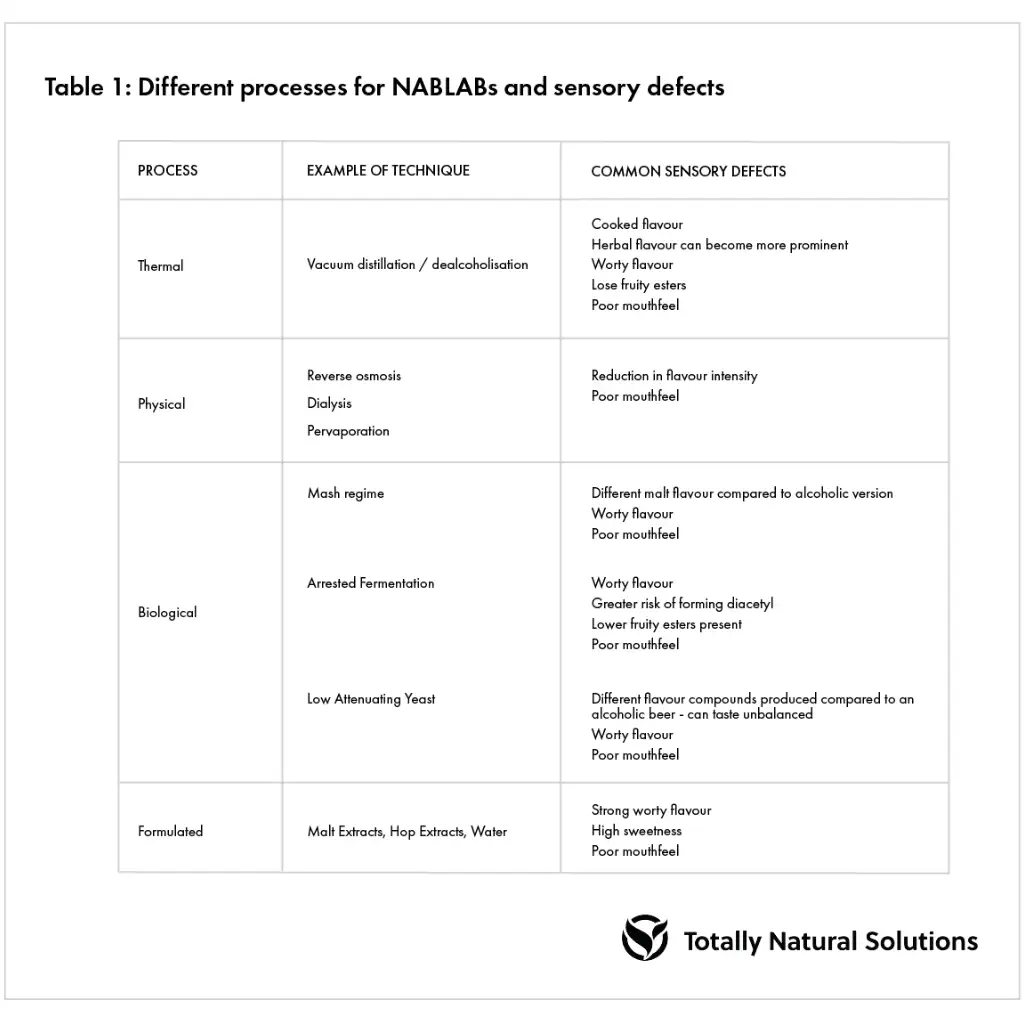 Depending on the size of breweries, various NABLAB processes will be used including thermal, physical, biological and formulated. All of these create a beer with a unique flavour and aroma profile with its own set of challenges.