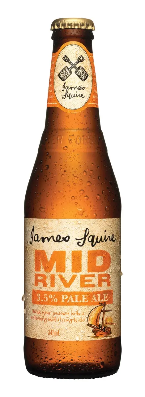 According to James Squire, Mid River is a full flavoured pale ale at 3.5 per cent ABV, employing Vienna and Munich malts for a rich, malty character.