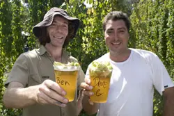 Ben Kraus owner/brewer at Beechworth’s Bridge Road Brewery has a very modest hop garden of East Kent Goldings, but also has access to the research garden at the nearby Rostrevor Hop Gardens. These provide him with access to some experimental hop varieties that he is among the first to use. Last year Ben turned out The Harvest, a fresh-hopped version of his Australian Ale and Ben is about to brew The Harvest II. The hop harvest will take place on Monday 14th March and the beer will be available in April or May. The uncertainty of exactly when is because, as Ben explains, “we keep adding hops to it until we think it’s ready.”