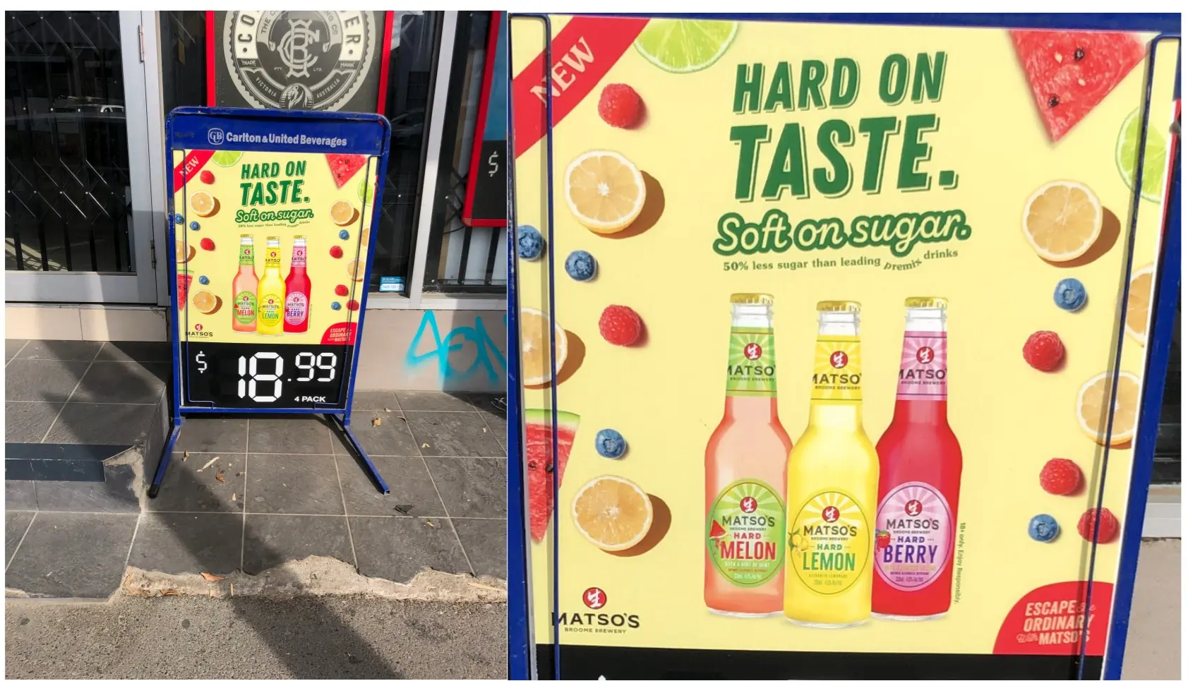 Matso’s Brewery, the WA ginger beer company, was on the receiving end of a complaint about its Hard Lemon, Berry and Melon drinks, advertised on a billboard outside Brunswick Cellars in Victoria.