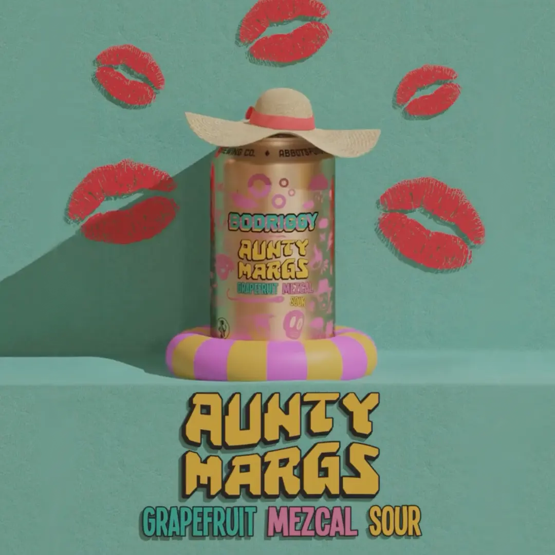 Aunty Margs Grapefruit Mezcal Sour (4.0% abv) features Voyager Red Gum Smoked Malt, giving the beer “a mild charred [and] smokey aroma” and a “bright, pithy grapefruit tartness”.