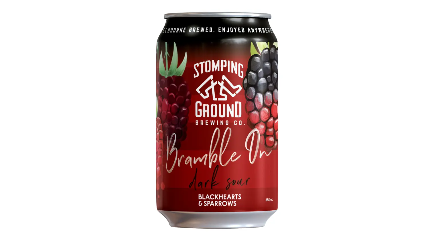 In collaboration with independent bottleshop Blackhearts & Sparrows, Stomping Ground’s Bramble On (4.2% abv) is a dark sour brewed with blackberries, raspberries and silvanberries.