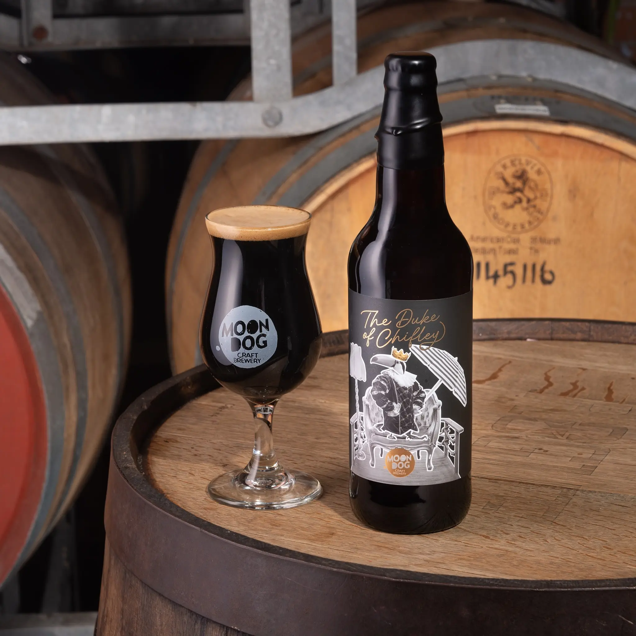 Brewed between Moon Dog OG in Abbotsford and Moon Dog World in Preston, The Duke of Chifley is an extremely limited edition, 12.2% abv Starward Whisky Barrel Aged Barley Wine with caramel and dried fruit flavours.