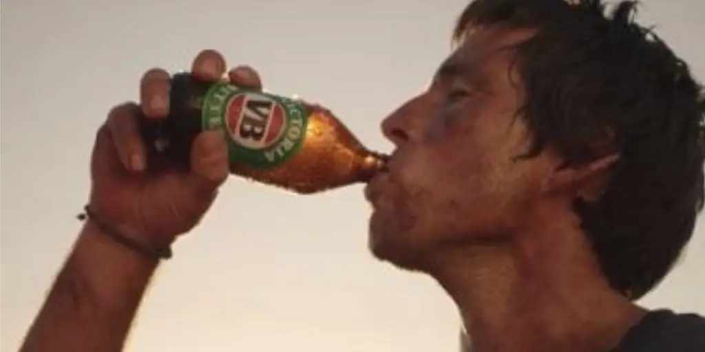 A VB advert featuring shots of people working under the hot sun at a solar farm, at the end of which they drink stubbies of VB.