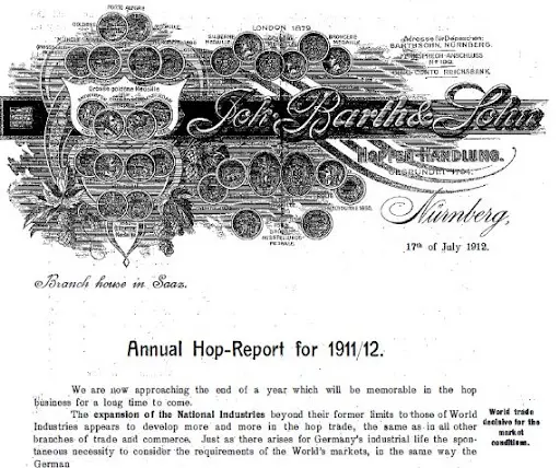 Welcome to Vol. 6, No. 3. BarthHaas published its annual report this week, as it has for more than 100 years. Even though information related to the hops industry (acreage, production, etc.) is better disseminated than it was a few years ago, this remains essential reading. What’s different this year is more data is presented in visual form; most definitely in contrast to 1911-12 (pictured below).
