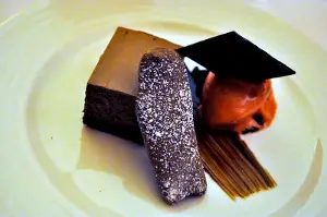 An exquisite dessert of Four Textures of Chocolate with Raspberry Sorbet was welcomed by everyone at the table and provided wine with the most convincing course win for the event. Eight votes provided the powerfully sweet and complex N.V Sanchez Romate Cardinal Cisneros Pedro Ximenez with a clear majority over the recently bottled Abbey Dubbel from the Hargreaves Hill Brewing Company.