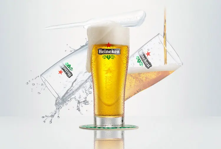 - Present the beer on a branded coaster, with the glassware logo facing the customer, with a smile and say “Enjoy your Heineken”.